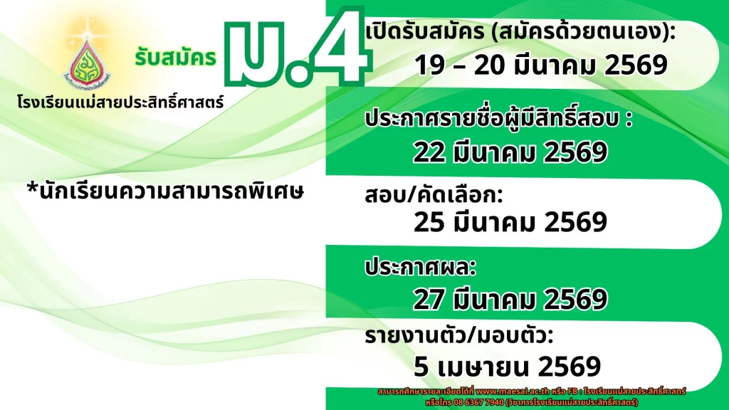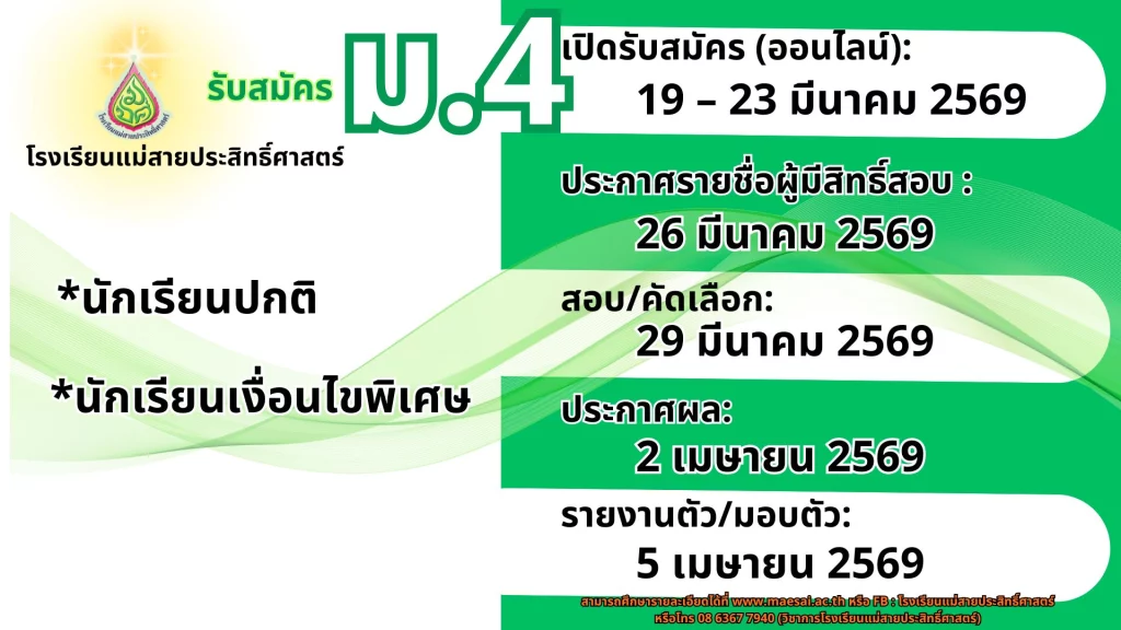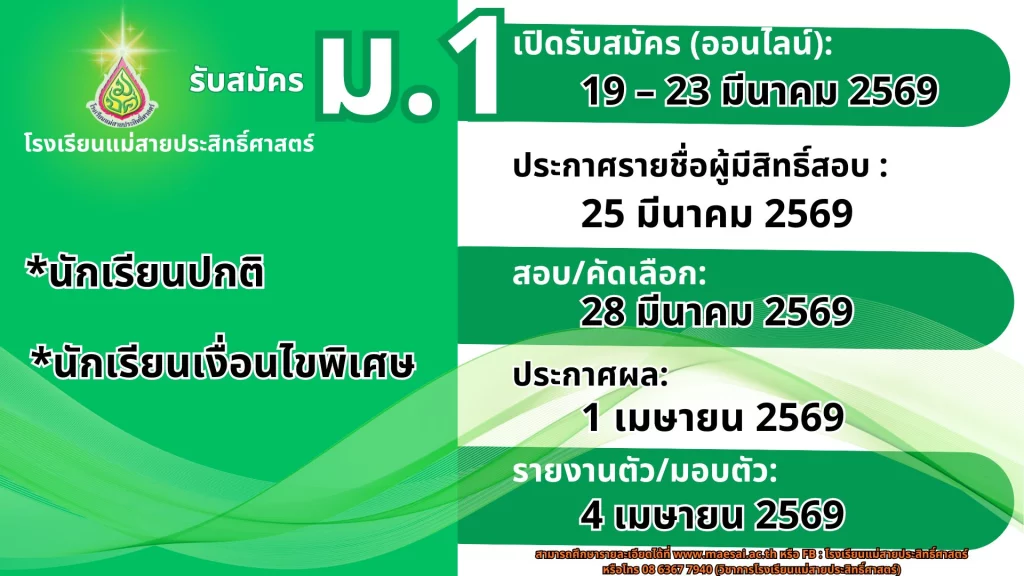 สอบถามรายละเอียดเพิ่มเติม วิชาการโรงเรียนแม่สายประสิทธิ์ศาสตร์ 086-3677940