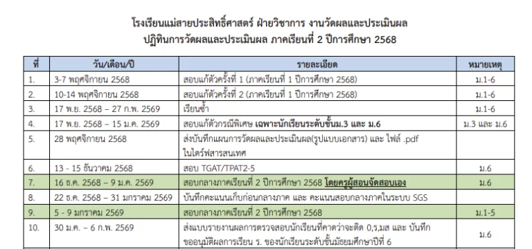 ดาวน์โหลด แจ้งปฏิทินการวัดผลและประเมินผล ภาคเรียนที่2 ปีการศึกษา 2568 (ฉบับปรับปรุงล่าสุด 17-2-2569)19/02/202619/02/2026