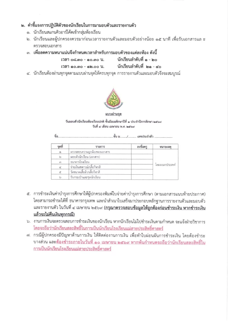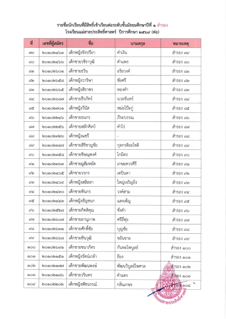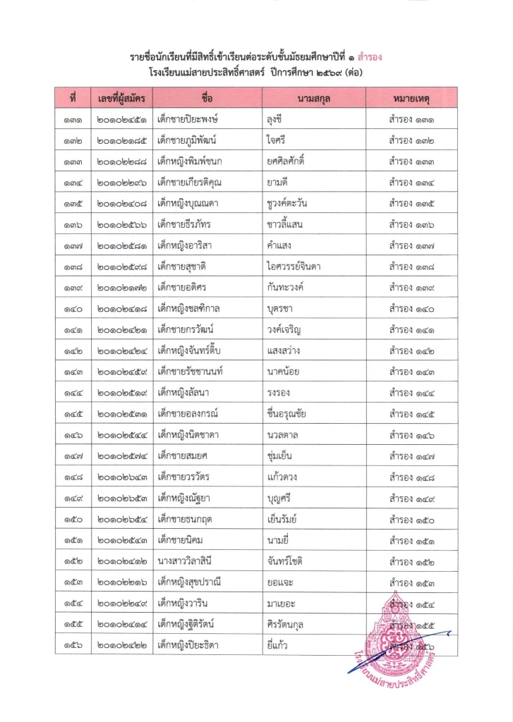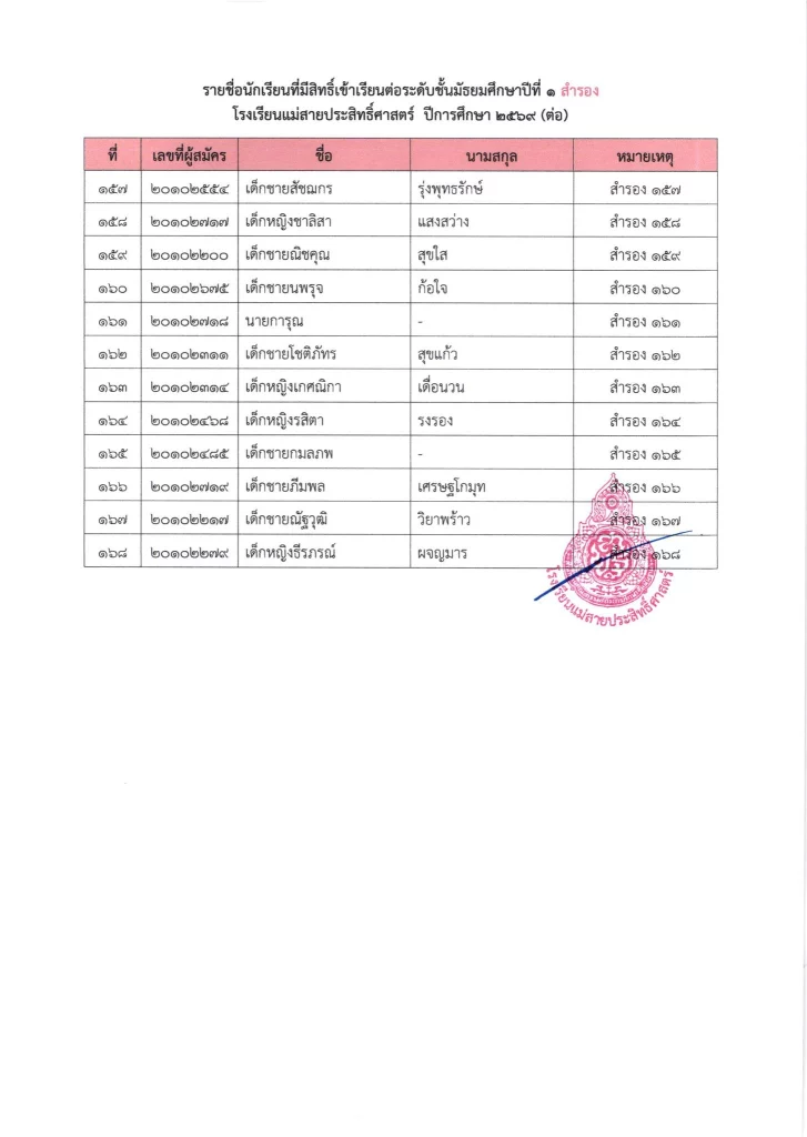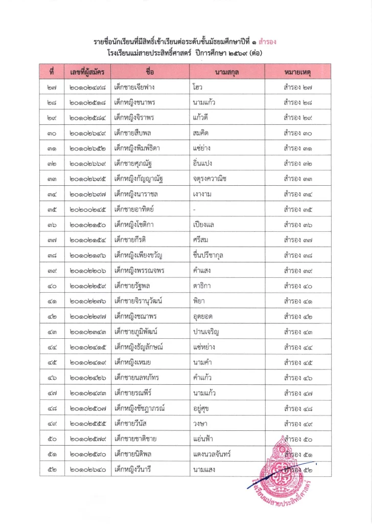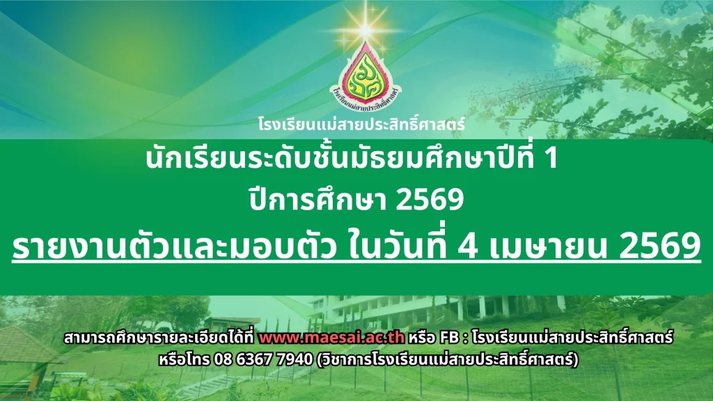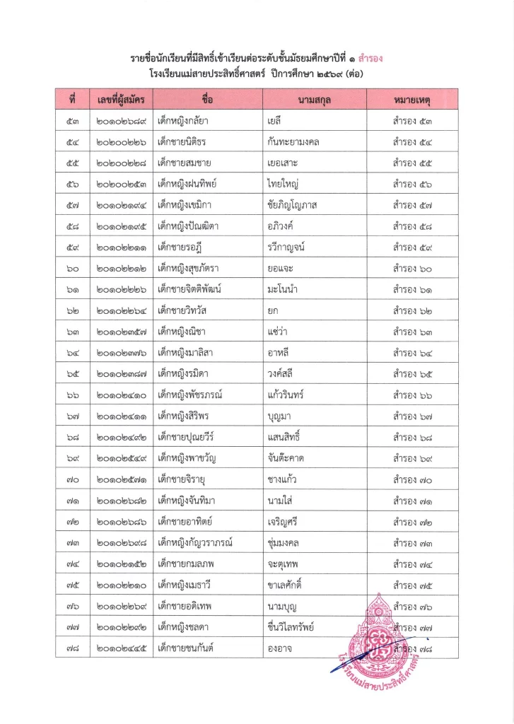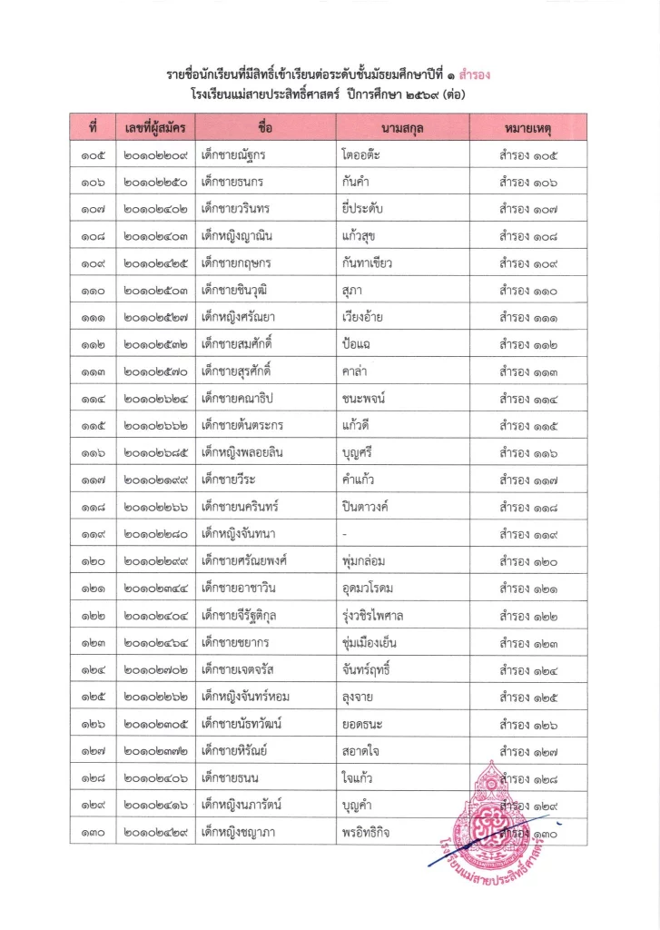 ประกาศ เรื่อง ผลการสอบคัดเลือกนักเรียนห้องเรียนปกติ มัธยมศึกษาปีที่ 1 ปีการศึกษา 2569