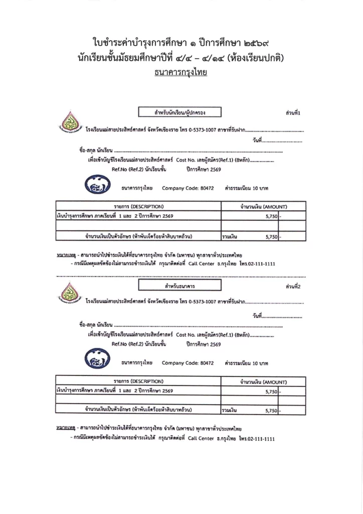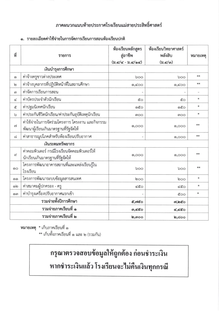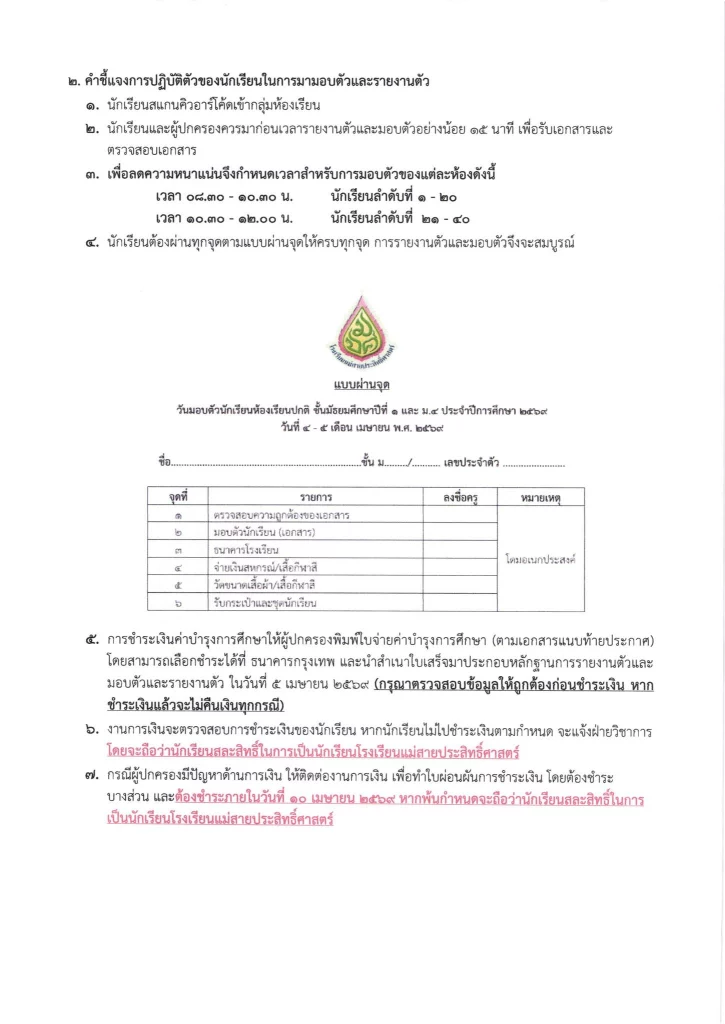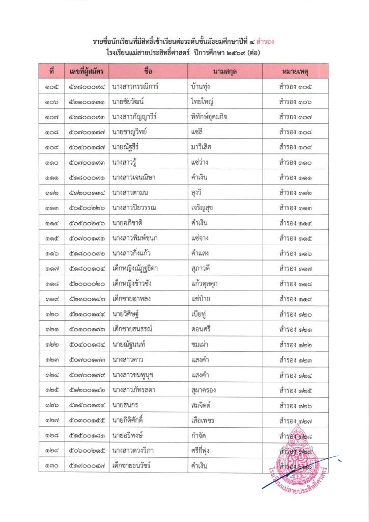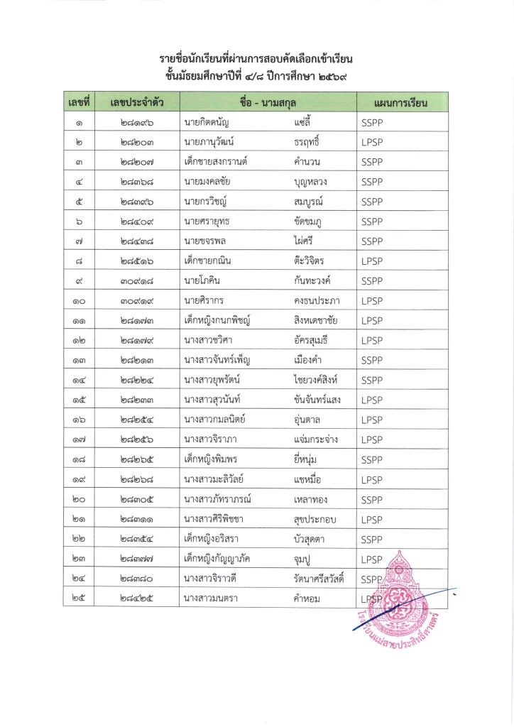 ประกาศ ประกาศ เรื่อง ผลการสอบคัดเลือกนักเรียนชั้นมัธยมศึกษาปีที่ 1 (ห้องปกติ) ตามโครงการเพชรแม่สาย ปีการศึกษา 256901/04/202601/04/2026