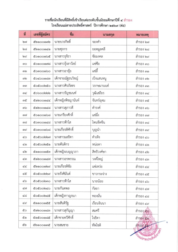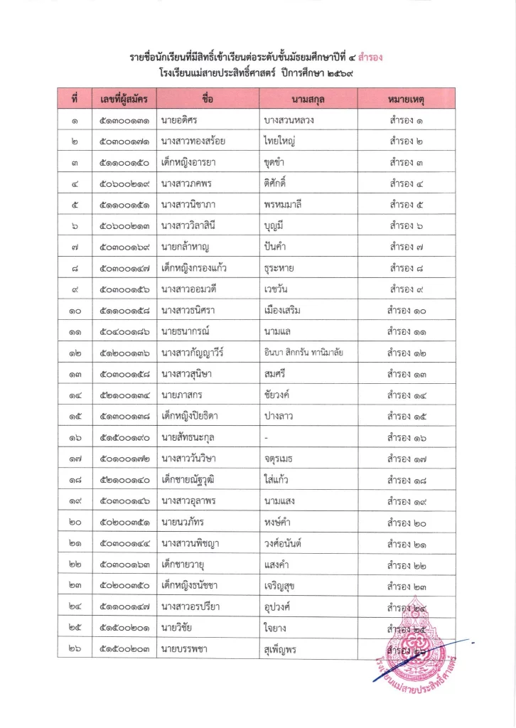 ประกาศ ประกาศ เรื่อง รายชื่อผู้มีสิทธิ์สอบเข้าเรียนชั้นมัธยมศึกษาปีที่ 4 ห้องเรียนปกติ ประจำปีการศึกษา 256926/03/202626/03/2026
