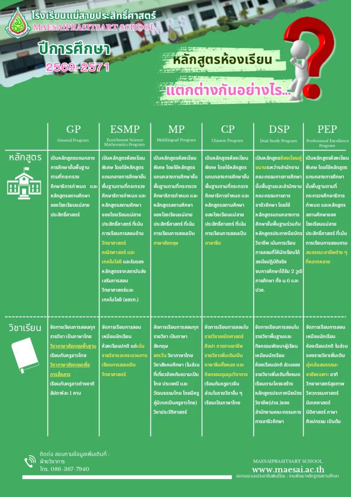 ข้อมูลพื้นฐาน หลักสูตรห้องเรียน Program โครงสร้างหลักสูตรระดับชั้นมัธยมศึกษาตอนปลาย06/01/202607/01/2026